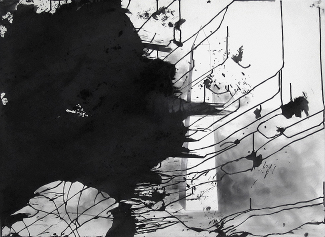 Untitled, black ink, graphite, charcoal, human hair, dirt, debris on paper, 90cm x 70cm